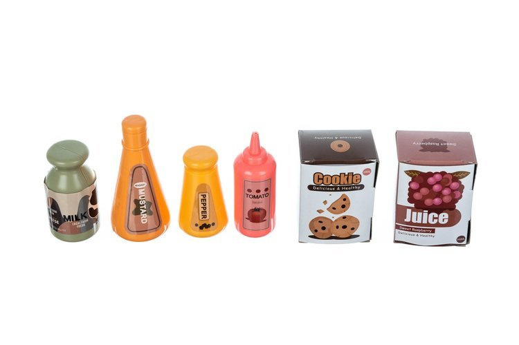 ? SPECIFIKACIJE - barva: večbarvna; napajanje gorilnikov: 3x AA (niso priložene); napajanje nape: 3x AA (niso priložene); število elementov v kompletu: 43; dimenzije kuhinje (dolžina / širina / višina): 23/50 / 72cm; teža kompleta: 2,6 kg; teža z embalažo: 3,2 kg.