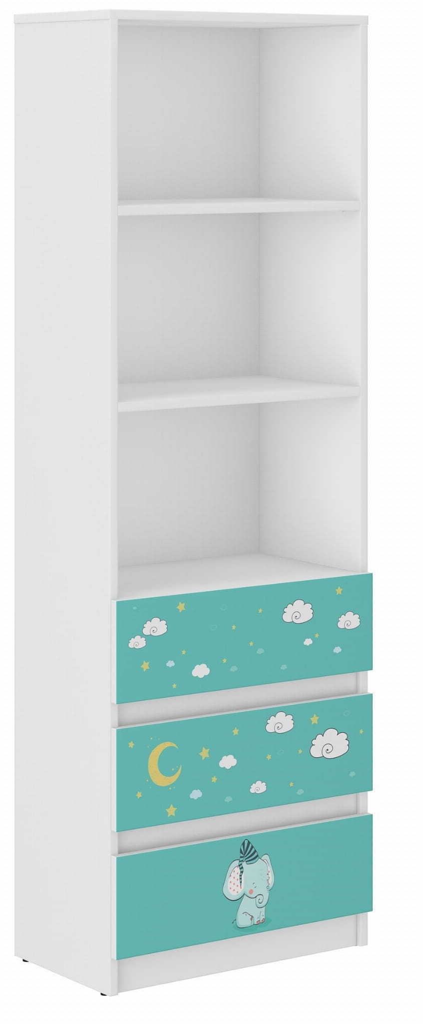 Otroška polična omara je osnovni del vsake otroške sobe. Omara je izdelana iz laminatnih plošč. Polične omare so zelo praktične in jih lahko uporabimo tako za otroška oblačila kot za igrače, knjige itd..