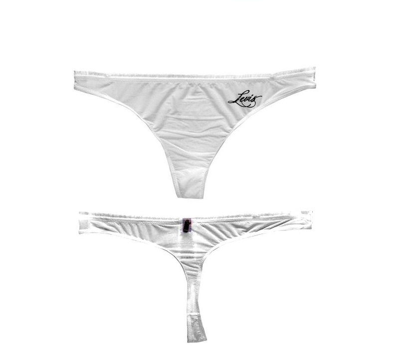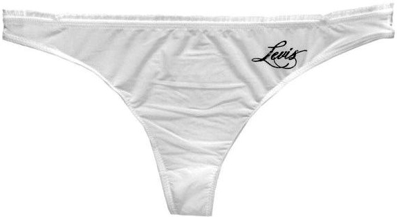 Hlačke so na zgornjem robu okrašene z majhno čipko in na levi strani z neopaznim majhnim vezenim napisom Levis.