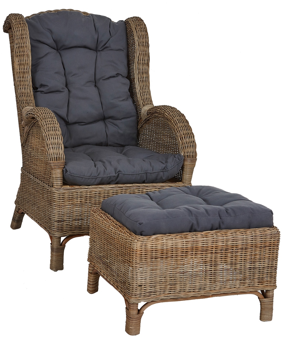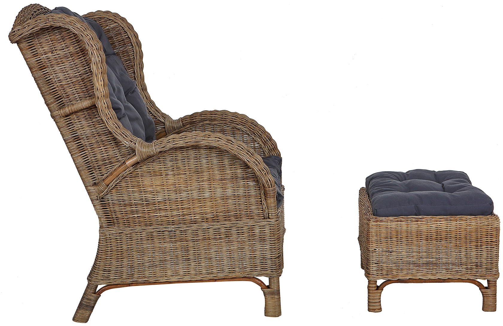 - Komplet vsebuje ratanov stol, ratanov tabure in celoten komplet blazin