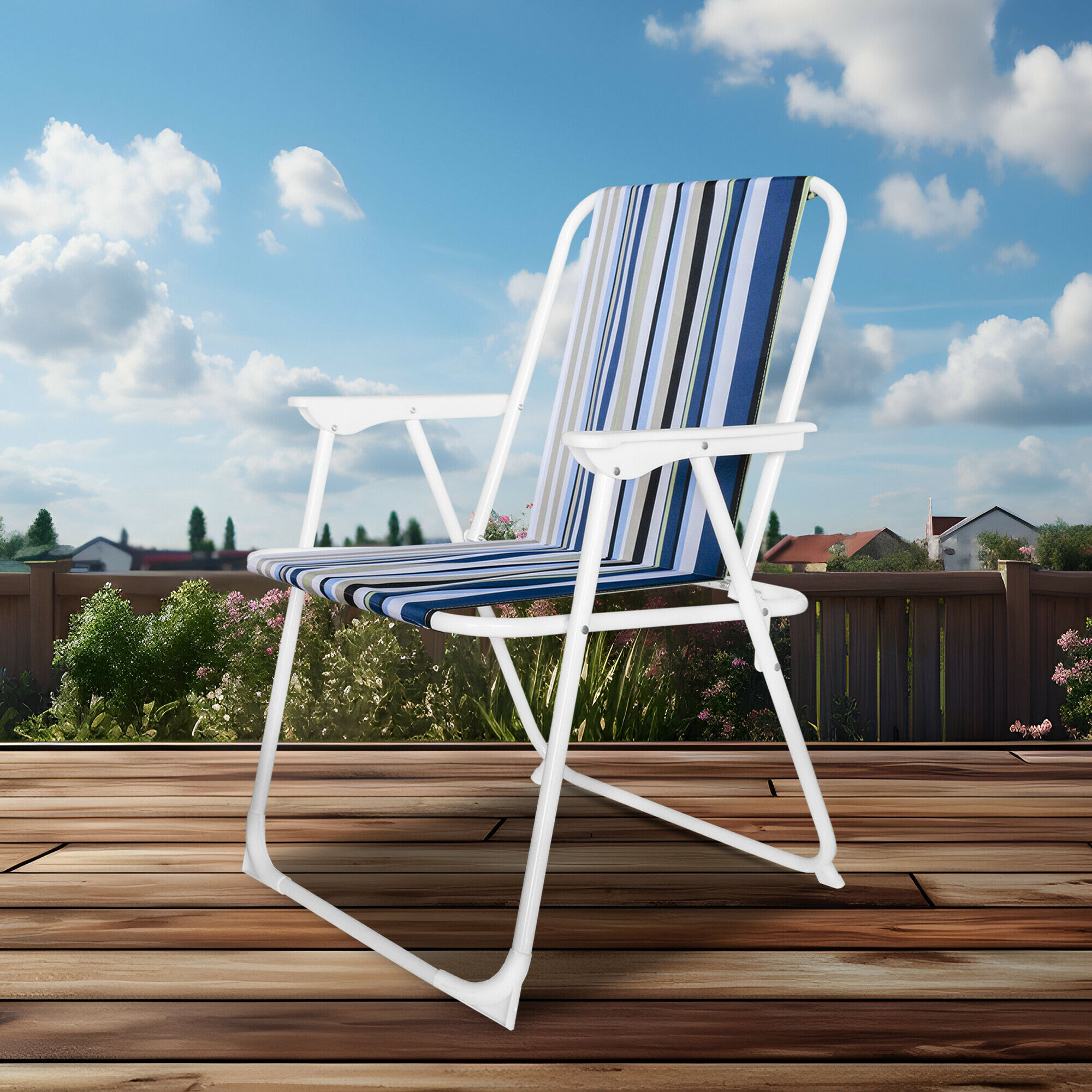 Zložljiv vrtni stol z udobnimi nasloni za roke, idealen za kampiranje, vendar bo zagotovo našel svojo uporabo tudi pri ribičih, modelarjih, vikendaših in lastnikih počitniških hiš.