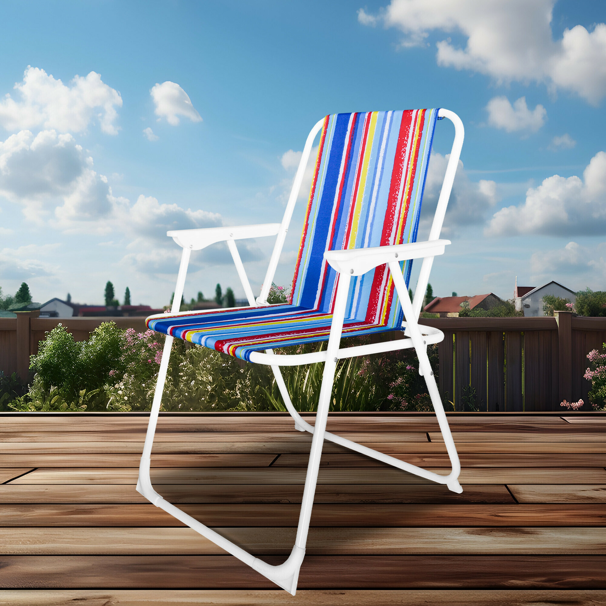 Zložljiv vrtni stol z udobnimi nasloni za roke, idealen za kampiranje, vendar bo zagotovo našel svojo uporabo tudi pri ribičih, modelarjih, vikendaših in lastnikih počitniških hiš.
