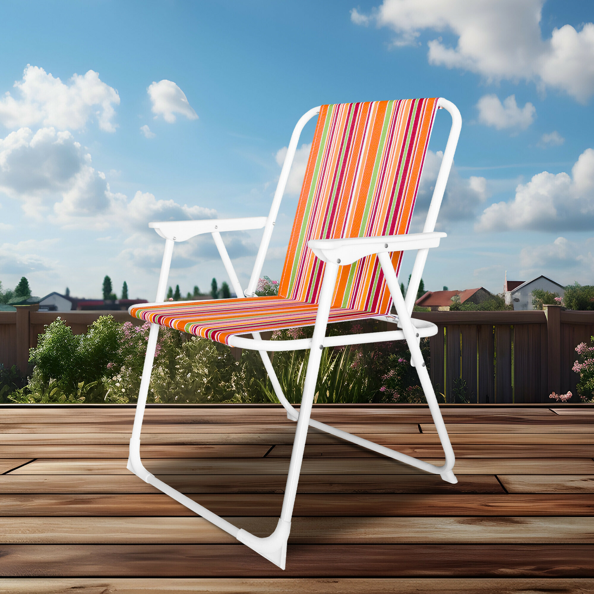 Zložljiv vrtni stol z udobnimi nasloni za roke, idealen za kampiranje, vendar bo zagotovo našel svojo uporabo tudi pri ribičih, modelarjih, vikendaših in lastnikih počitniških hiš.