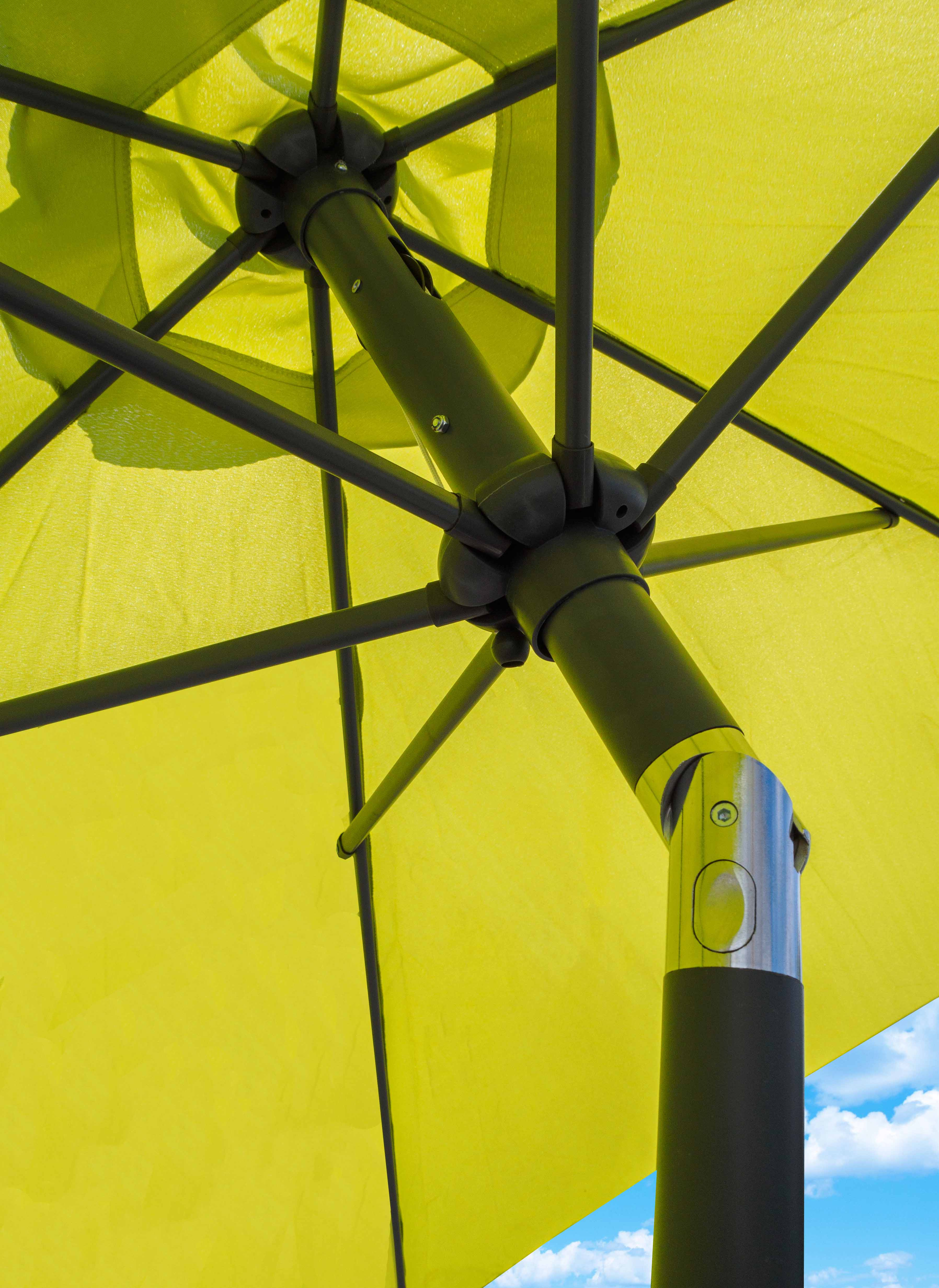 Enostavno rokovanje pri razstavljanju in sestavljanju senčnika zagotavlja preprost klik mehanizem.