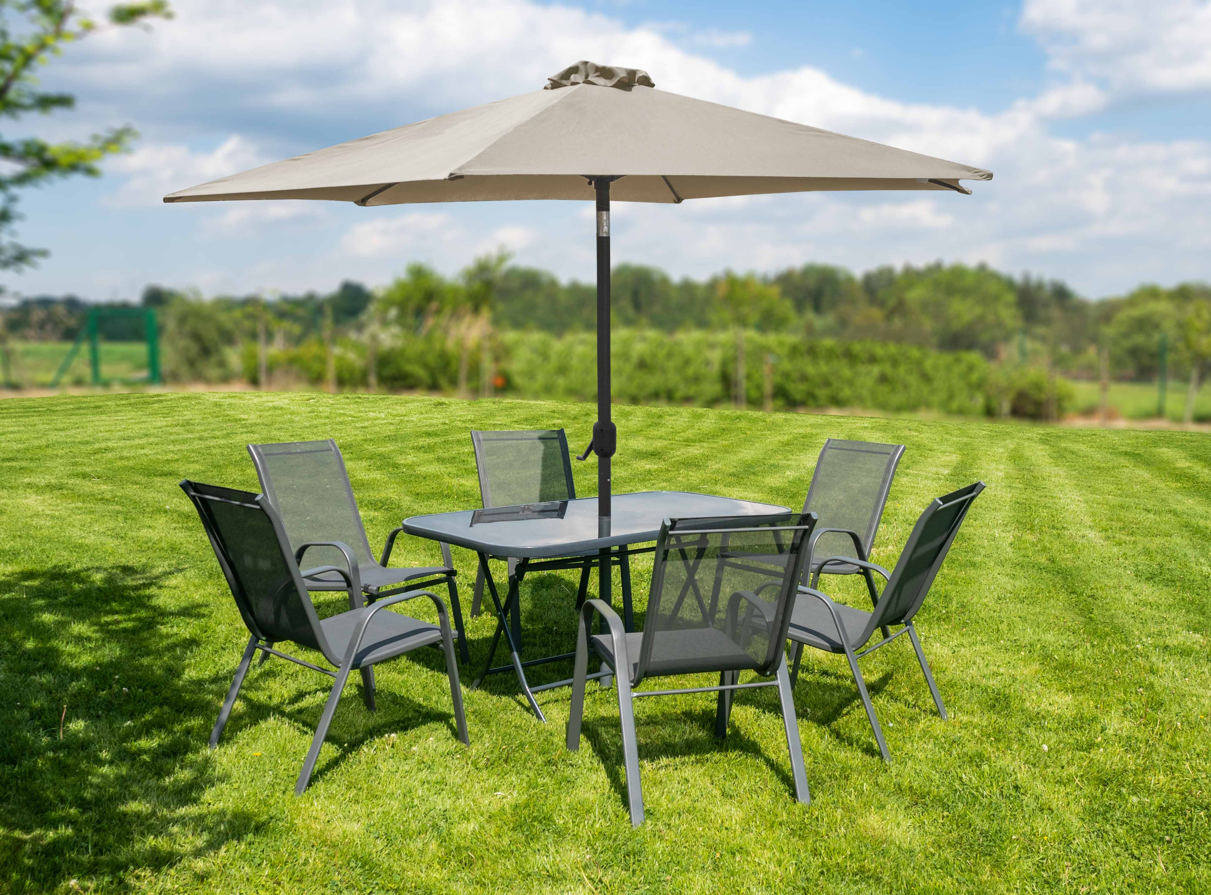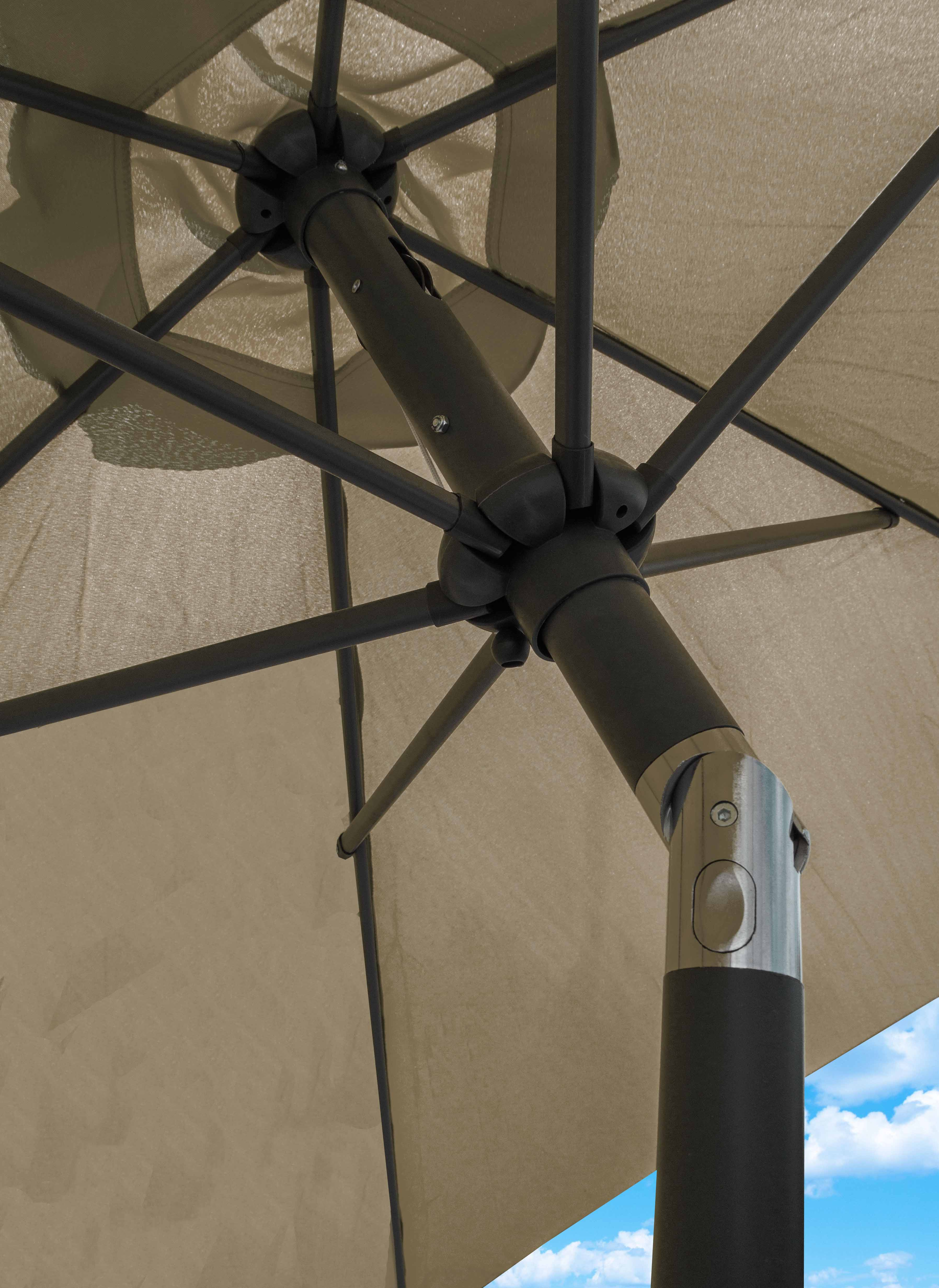 Enostavno rokovanje pri razstavljanju in sestavljanju senčnika zagotavlja preprost mehanizem s klikom.