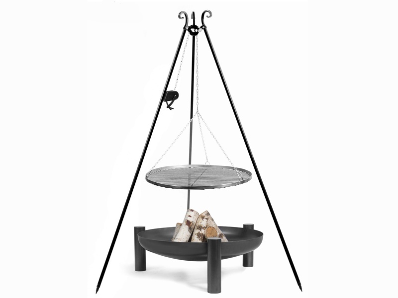 Okroglo kurišče s premerom 50 cm in globino posode 13 cm je izdelano iz masivnega jekla debeline približno 2,5 mm.