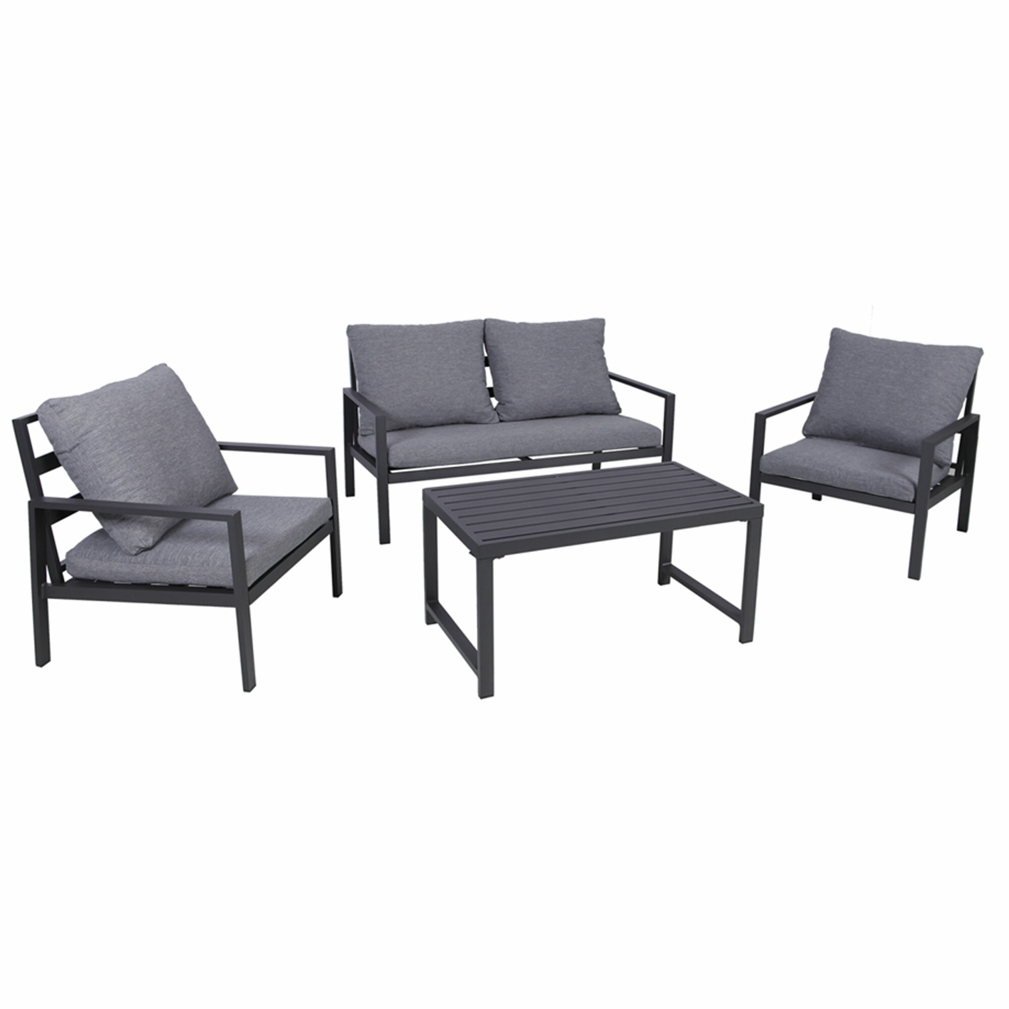Lahka in trpežna konstrukcija vrtne garniture je izdelana iz kakovostnega in trdnega aluminija, ki je premazan s prašnim lakom.