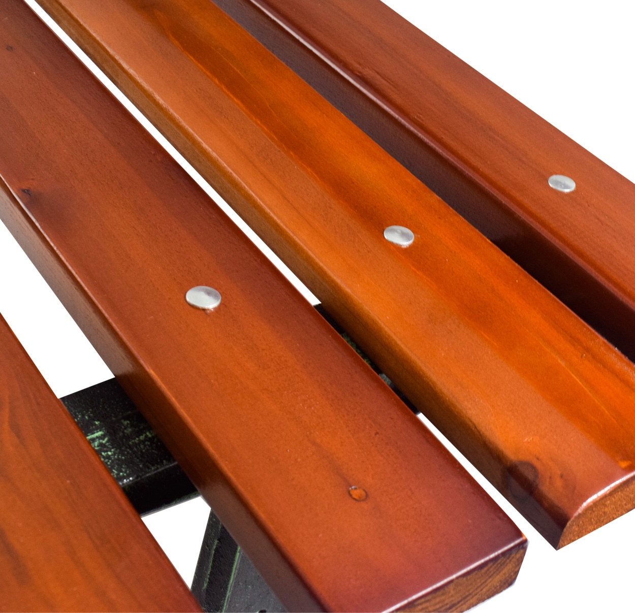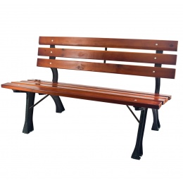Trdna litoželezna konstrukcija, ki je dopolnjena z lesenimi letvami. Nosilnost klopi 240 kg.