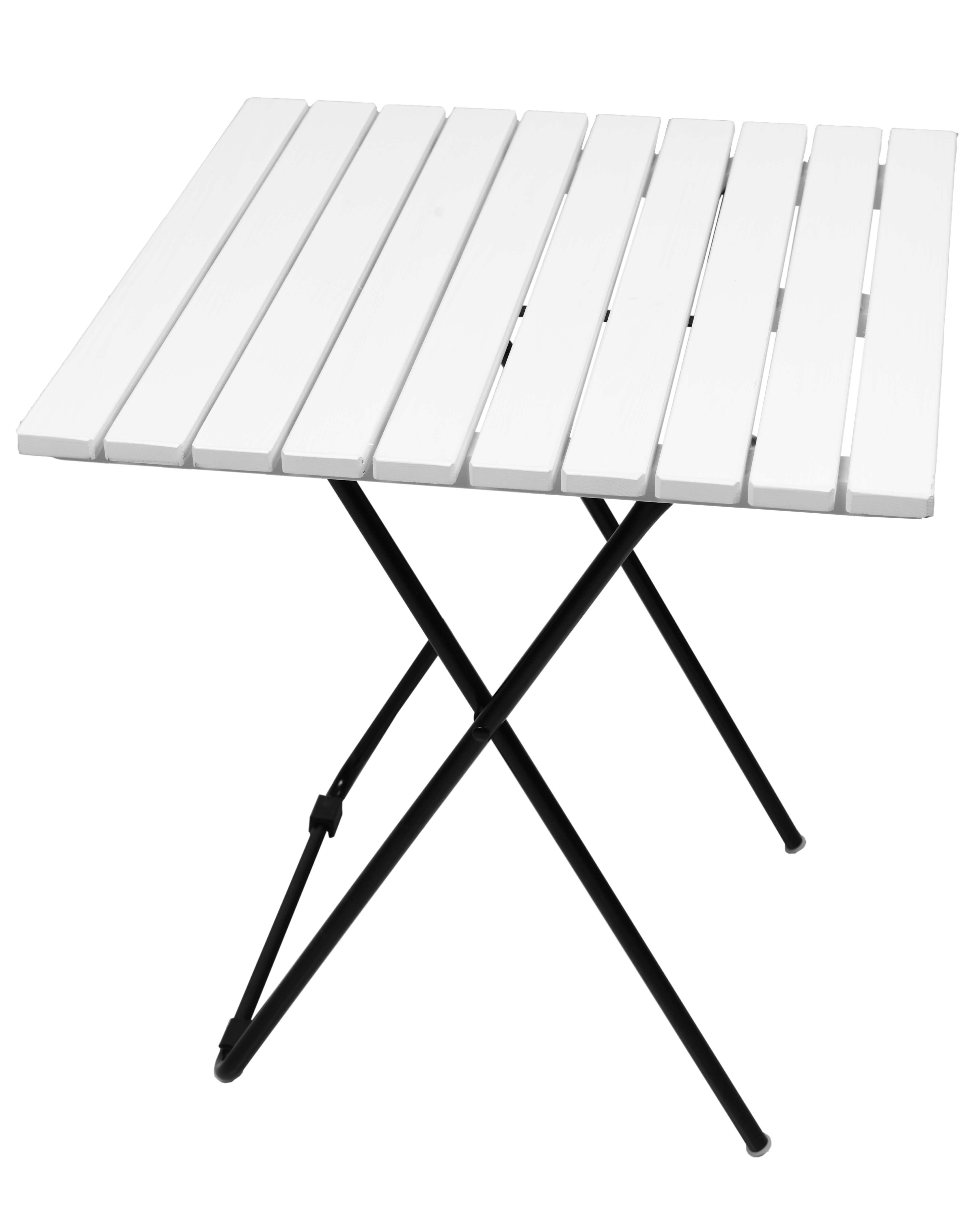 Zložljiva vrtna miza s trdnim kovinskim okvirjem in leseno ploščo, idealna za vrtove, terase, paviljone, balkone, pa tudi za notranjost restavracij in kavarn.