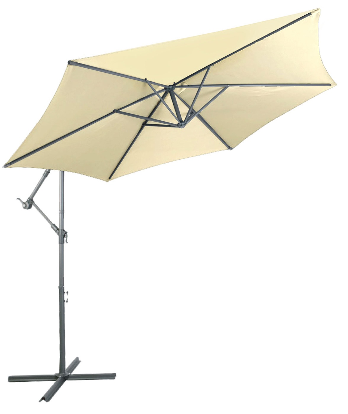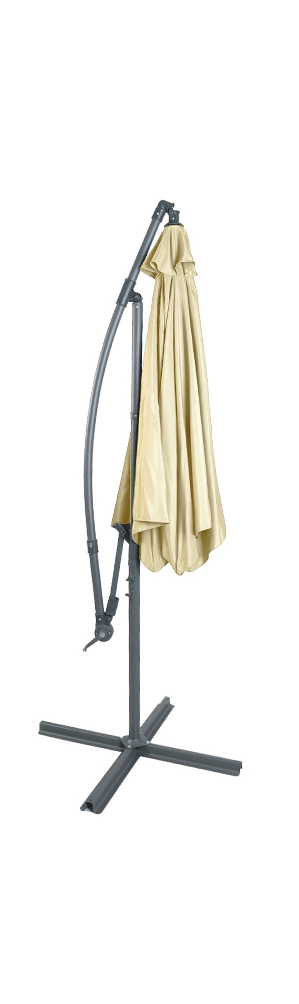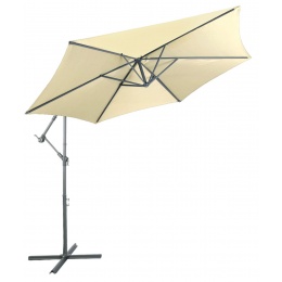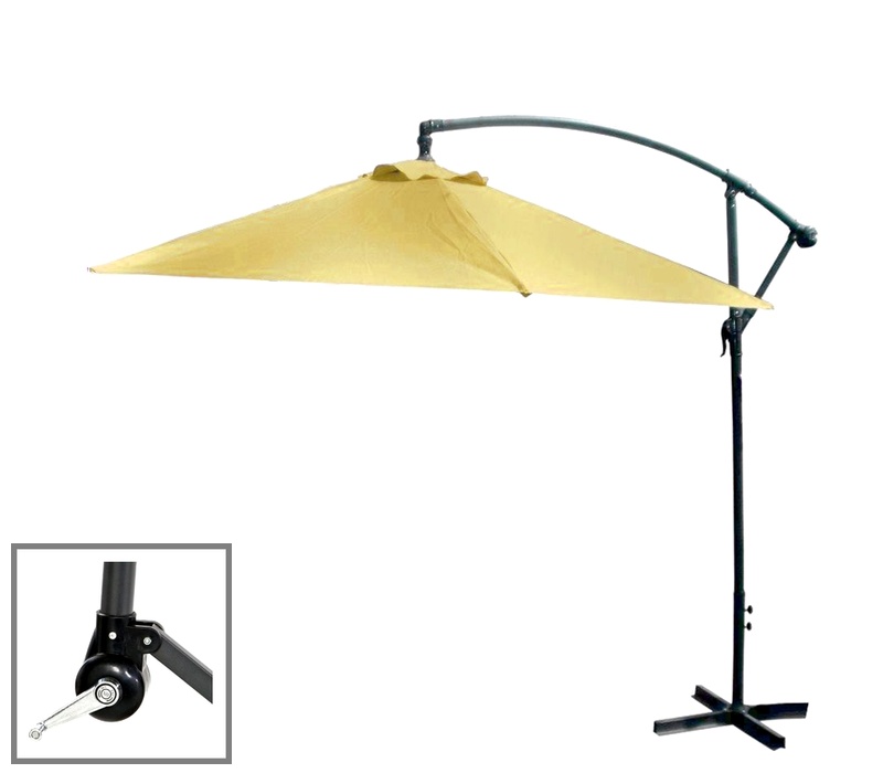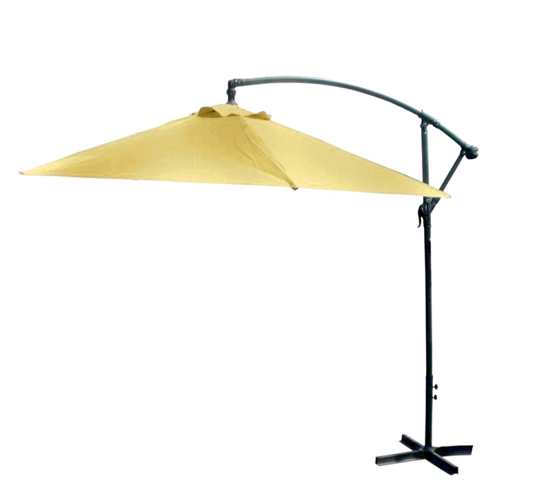 Praktičen vrtni senčnik iz trpežnega poliestra, katerega noga je nameščena zunaj senčenega območja.