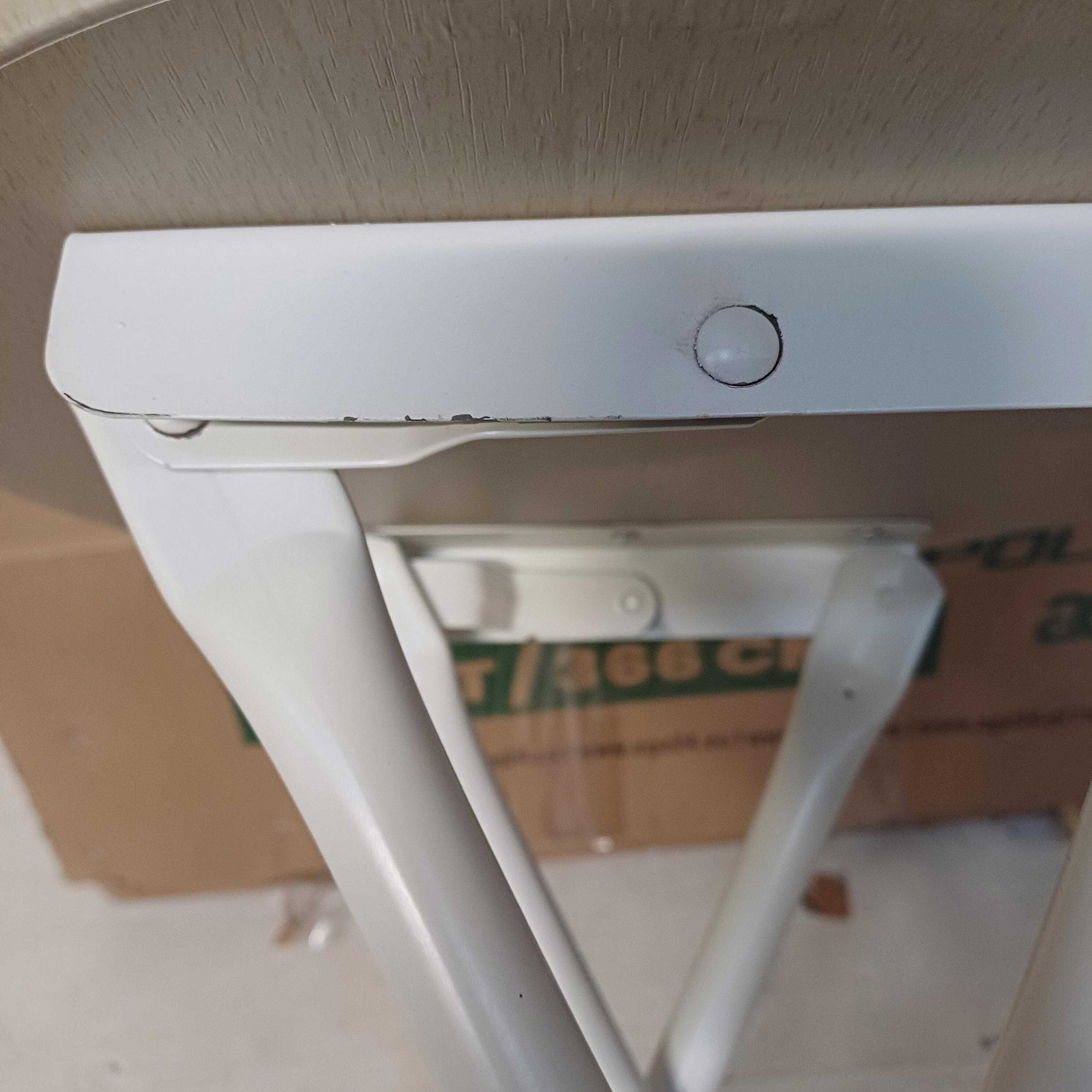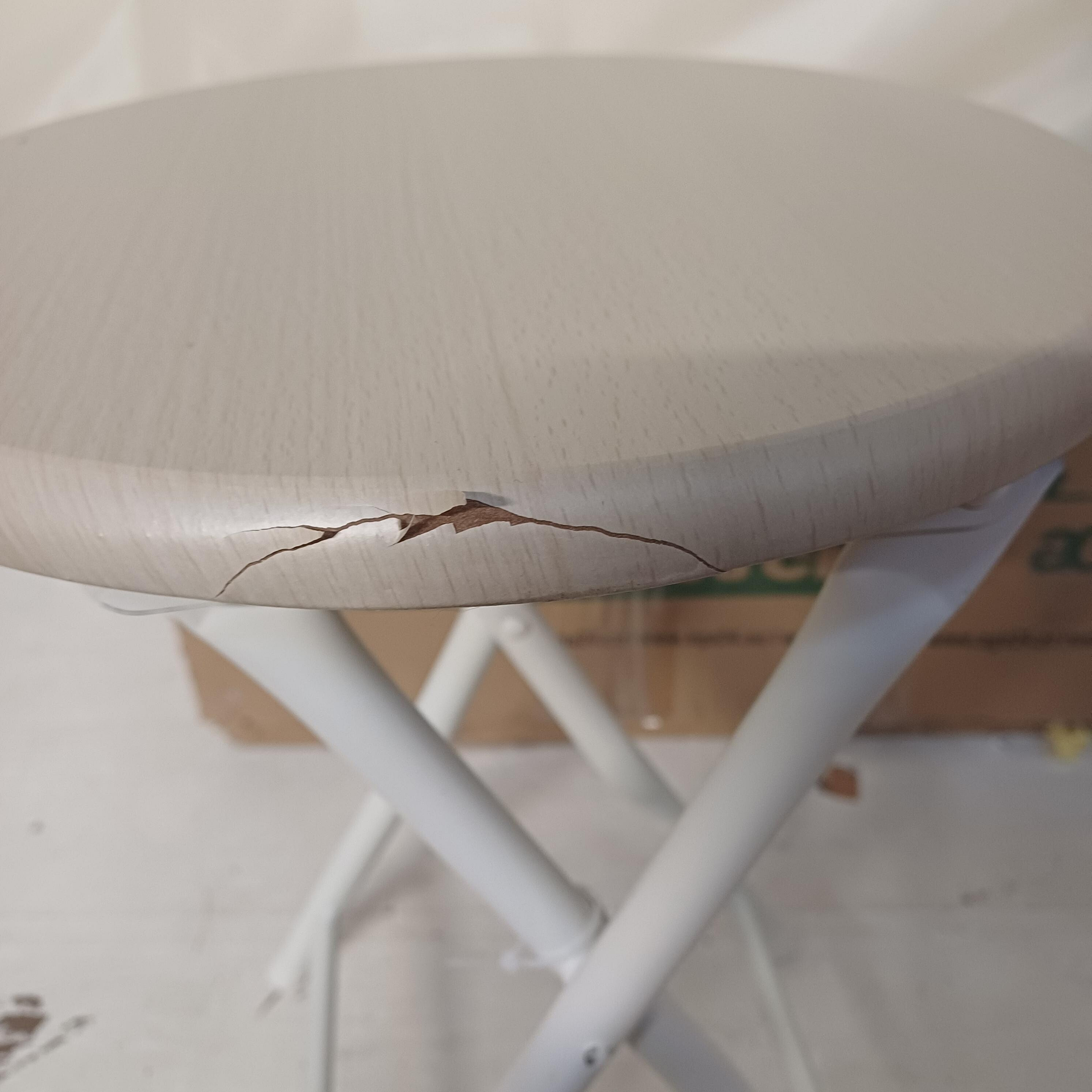 Izdelek ima kozmetične napake v obliki prask in delno luščenje furnirja. Ti pomanjkljivosti ne vplivajo na funkcionalnost stola.