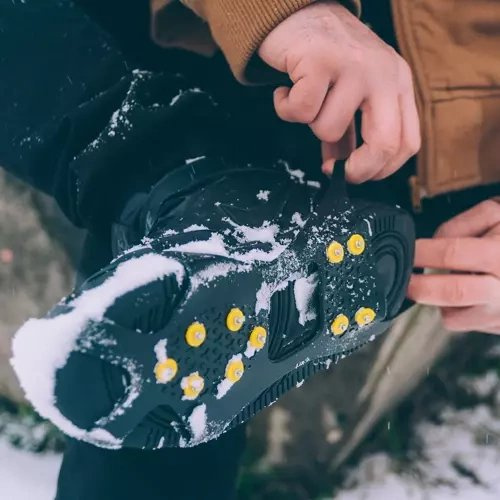 Prožni gumijasti nastavki za čevlje s protizdrsnimi konicami so nepogrešljiv element izleta ne le v gore.