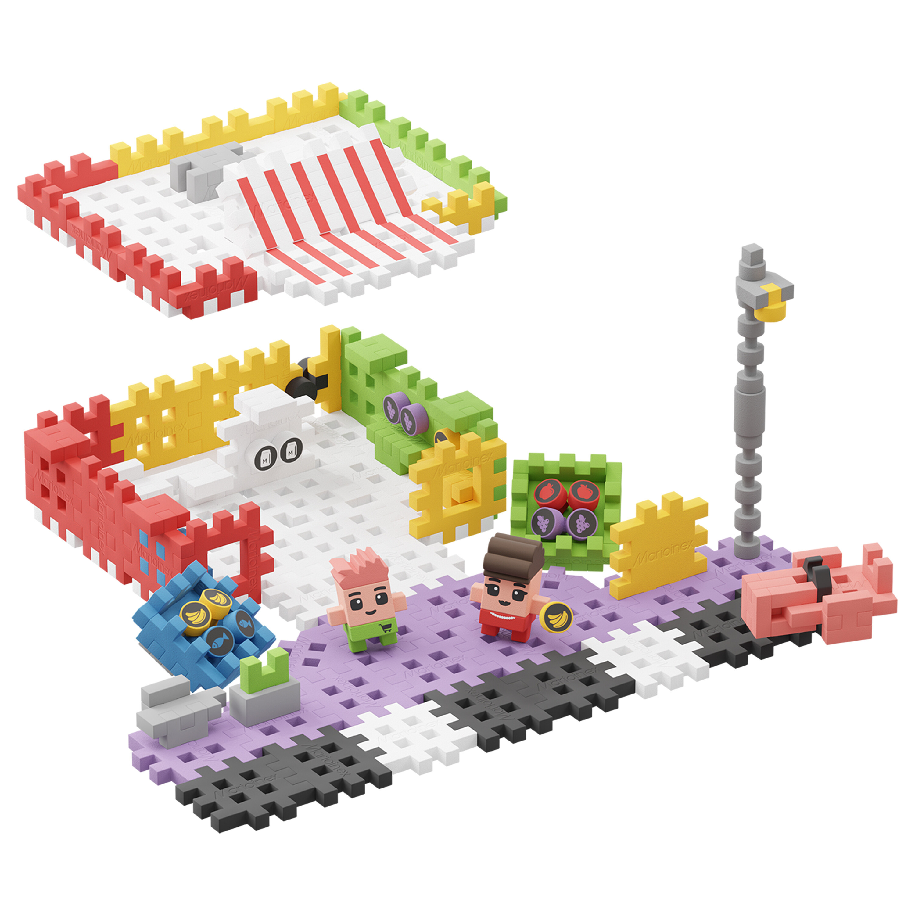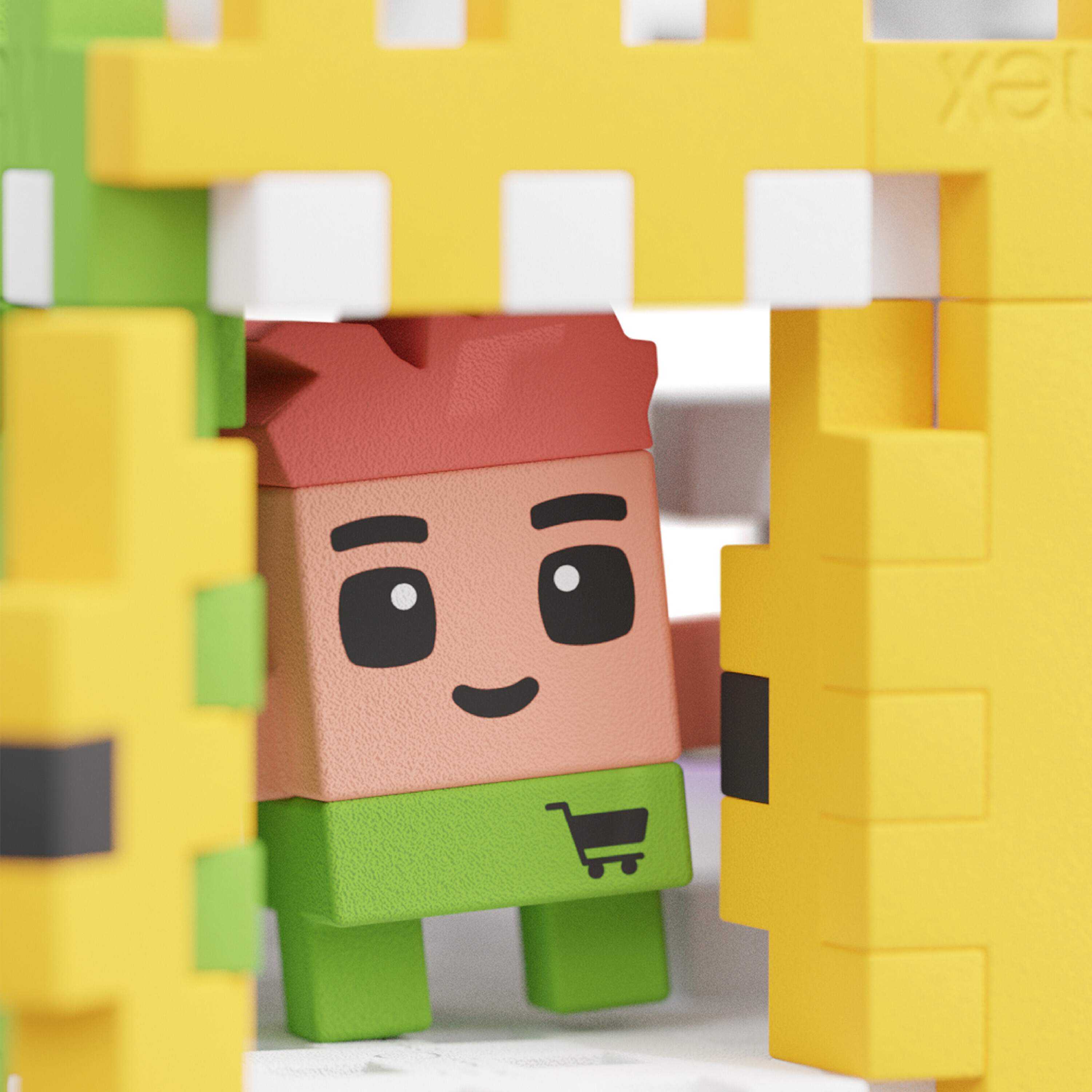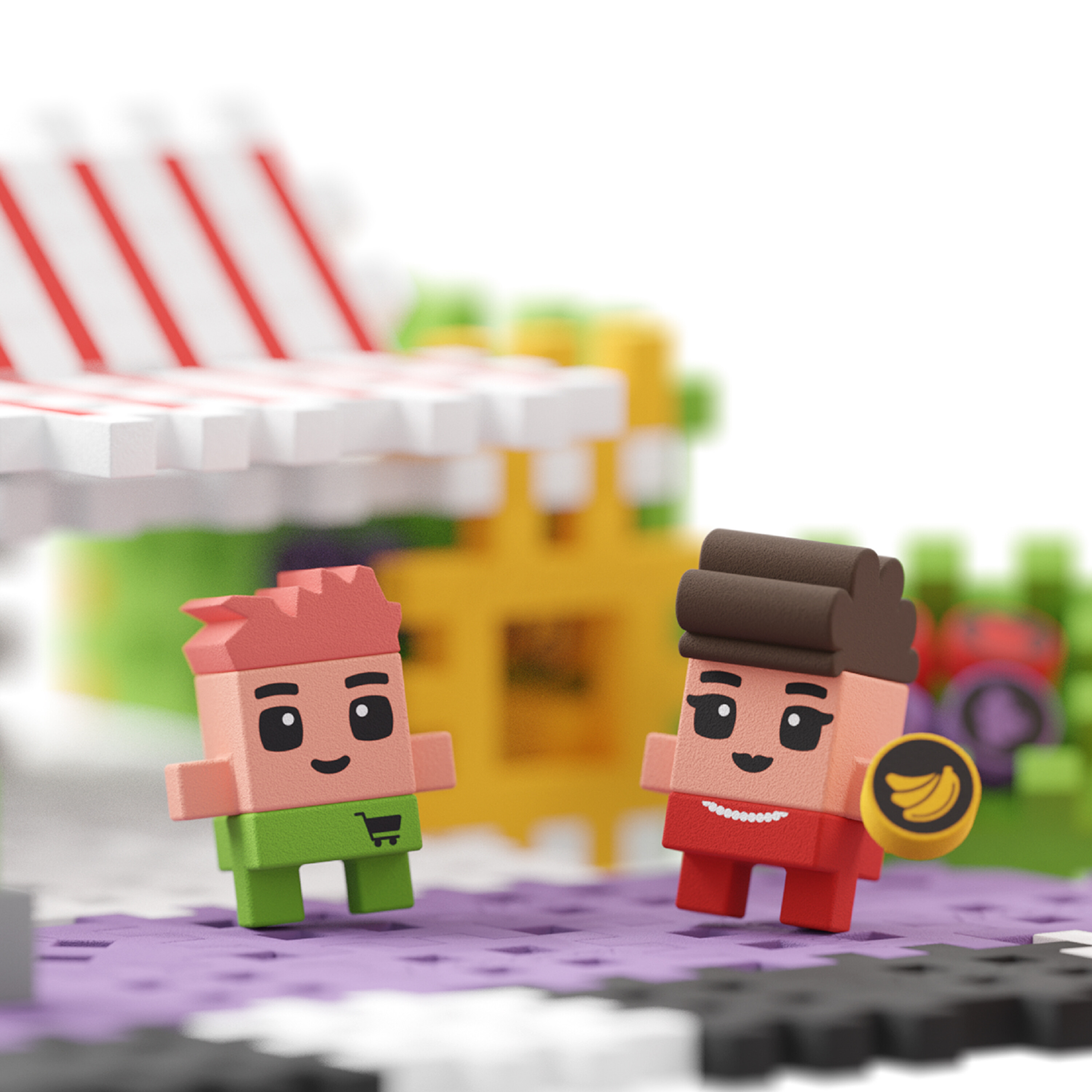Set vsebuje 148 kock in dve originalni figuri, od katerih se ena pošteno spoti, ko oskrbuje lokalne prebivalce s svežo hrano. Sestavite si trgovino po navodilih in jo kombinirajte z drugimi kompleti iz serije Waffle City, ki bodo skupaj oživili mestec. Seveda ne brez pomoči vaše domišljije. In ko vas z vašim otrokom napade nekaj novega, lahko iz elementov kompleta zgradite povsem novo in fascinantno strukturo.