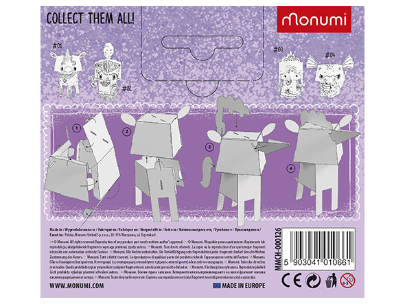 MONUMI je poljska znamka, ki jo je ustvarila ekipa ljudi, za katere je delo strast in otroško veselje glavna nagrada za kreativno ustvarjanje igrač, ki zabavajo in učijo. Skrbna izbira skupine strokovnjakov, ki razvijajo materiale tako z vsebinskega kot umetniškega vidika, je usmerjena v to, da naši izdelki učinkovito vplivajo na duševni razvoj otrok. MONUMI ustvarja edinstvene papirnate ustvarjalne komplete in pobarvanke za različne skupine bralcev ob upoštevanju njihovih estetskih in intelektualnih potreb.