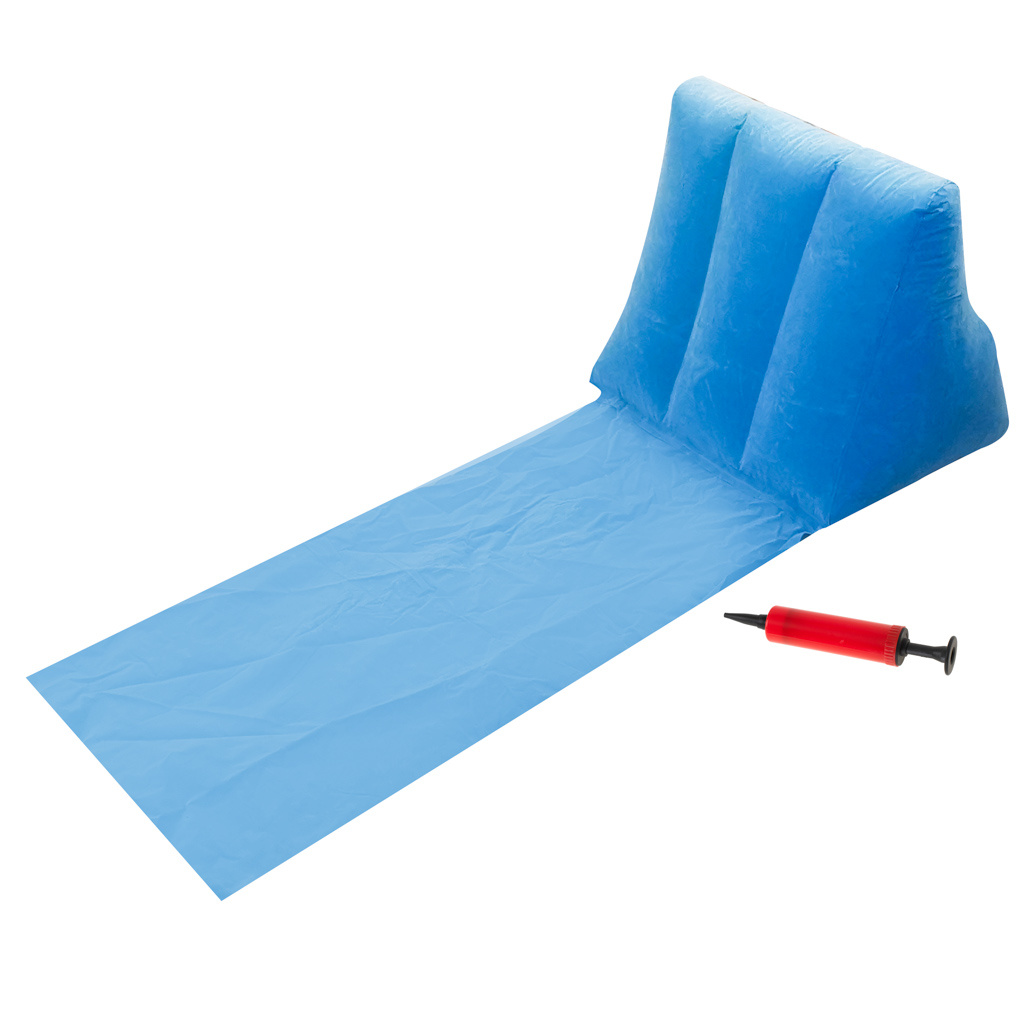 Tehnične specifikacije: Barva: modra Dimenzije naslonjala: 50 cm x 50 cm x 37 cm Dimenzije podloge: 95 cm x 45 cm Število komor: 1 Dimenzije črpalke: 18 cm x 3 cm Dimenzije pakiranja: 25 cm x 20 cm x 5 cm Izdelek je pakiran v folijski embalaži.