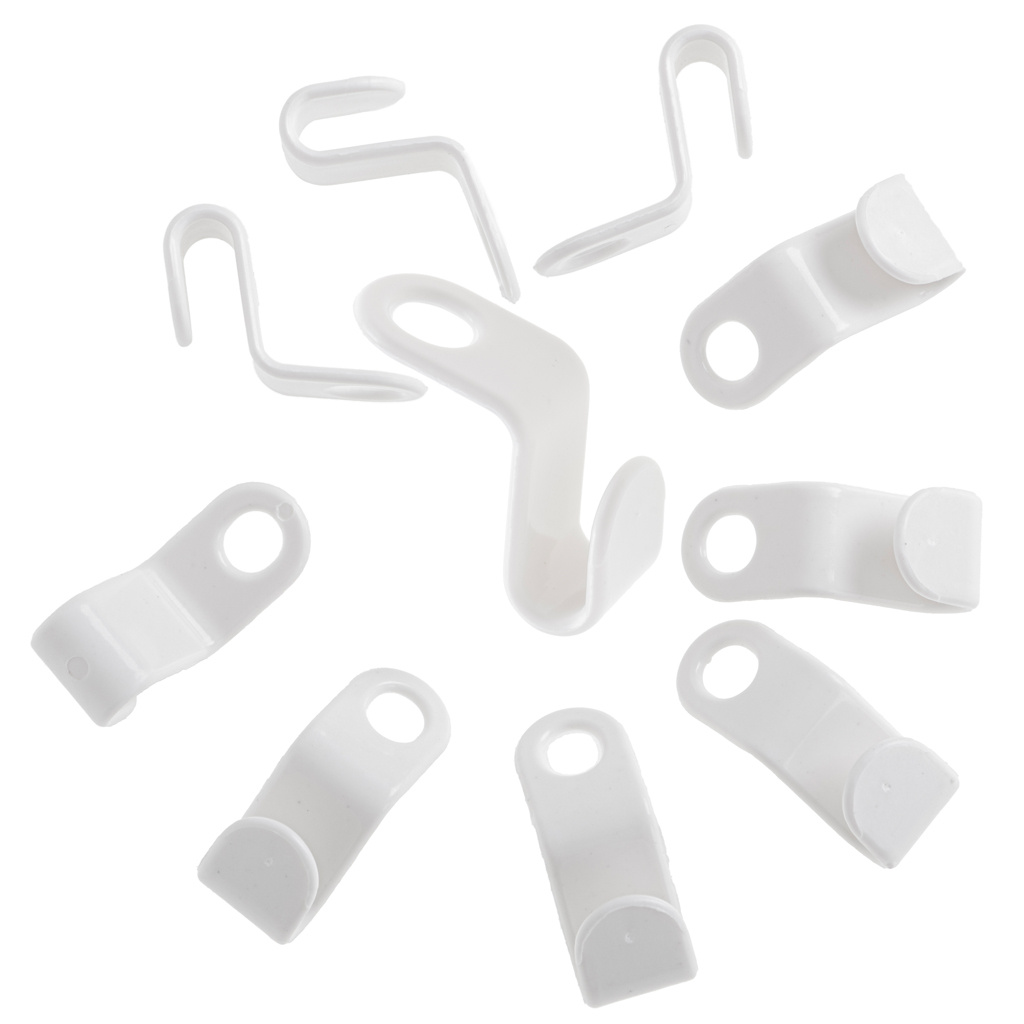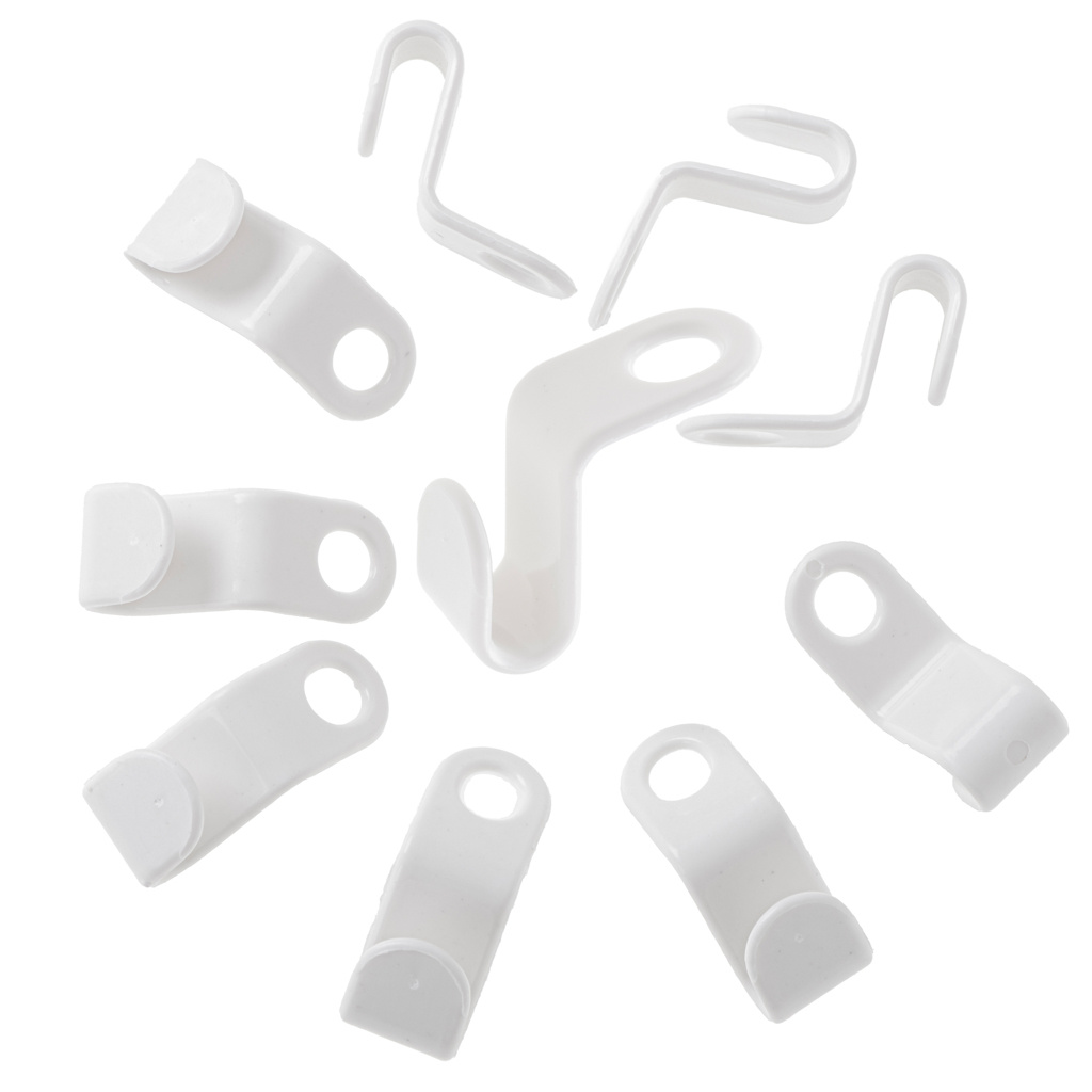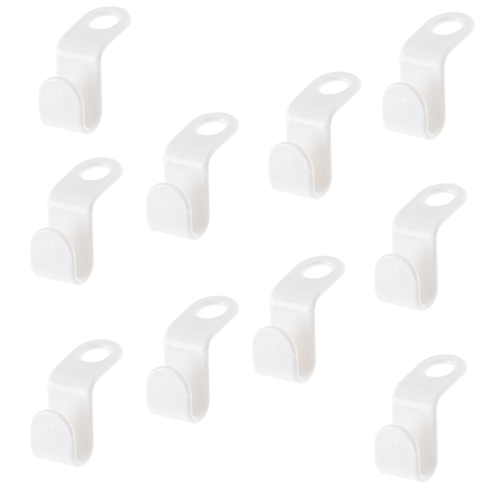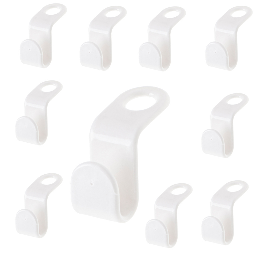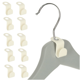 Praktični kavlji za obešalnike, ki vam bodo pomagali organizirati in ohranjati red v omari ali garderobi. Material: plastika. Barva: bela. Količina: 10 kosov. Dolžina: 4,5 cm. Širina: 2 cm. Premer odprtine za zaves: 1,5 cm.Celoten opis