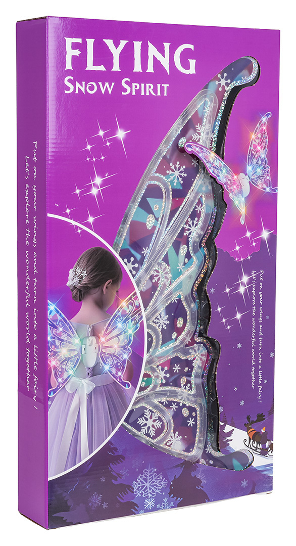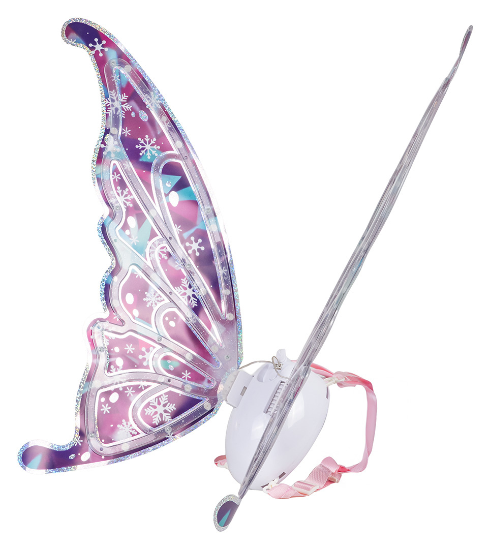 Čarobna, interaktivna metuljeva krila z učinkom svetlobe in zvoka, za otroke od treh let. Igrača je bila izdelana s poudarkom na podrobnostih, vaš malček se bo v njej počutil čarobno. Krila bodo idealna za ples, predstavo ali za vsakodnevno zabavo. Igrača je napajana z baterijami tipa 4 x AA 1,5 V (niso priložene).