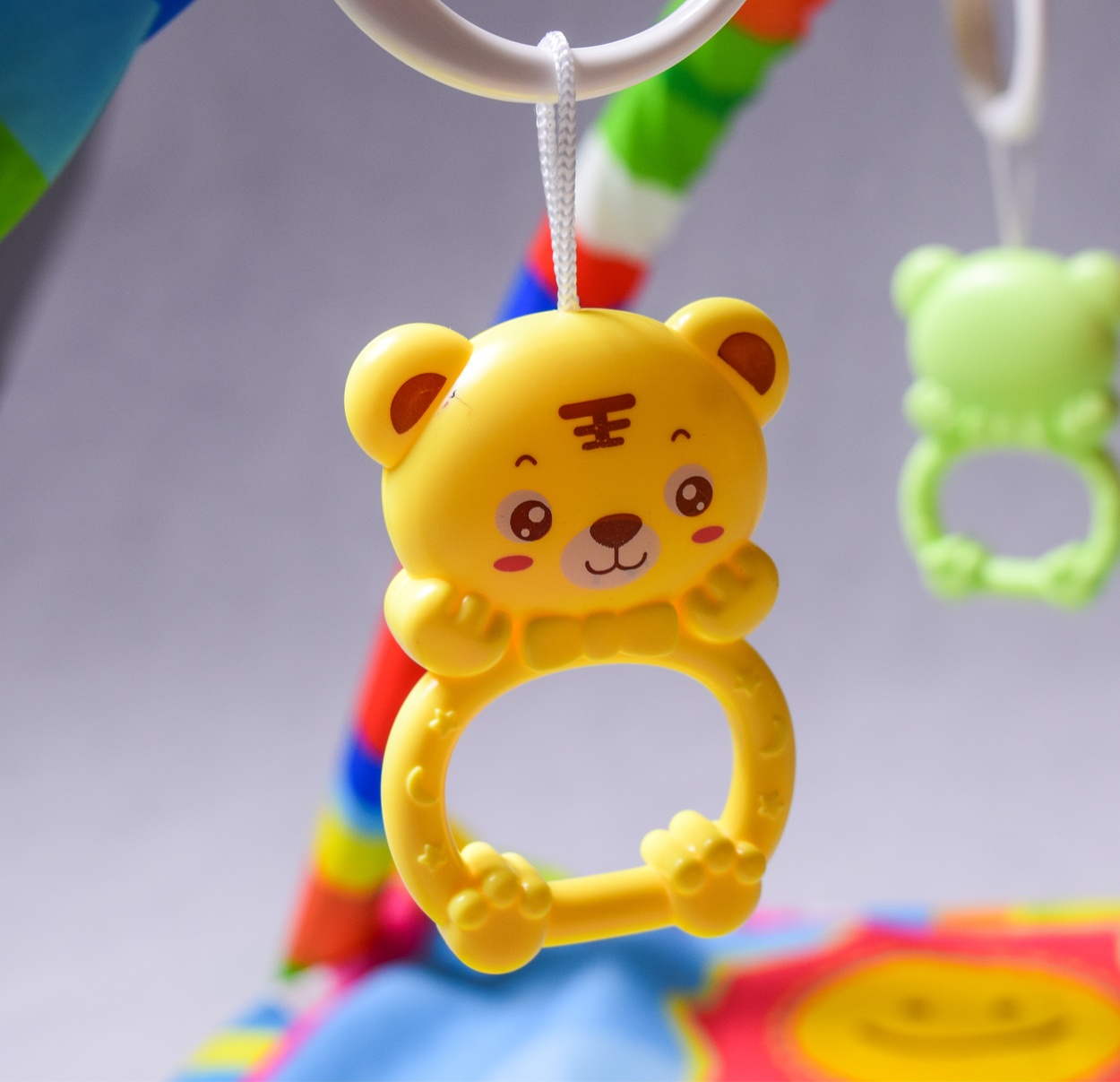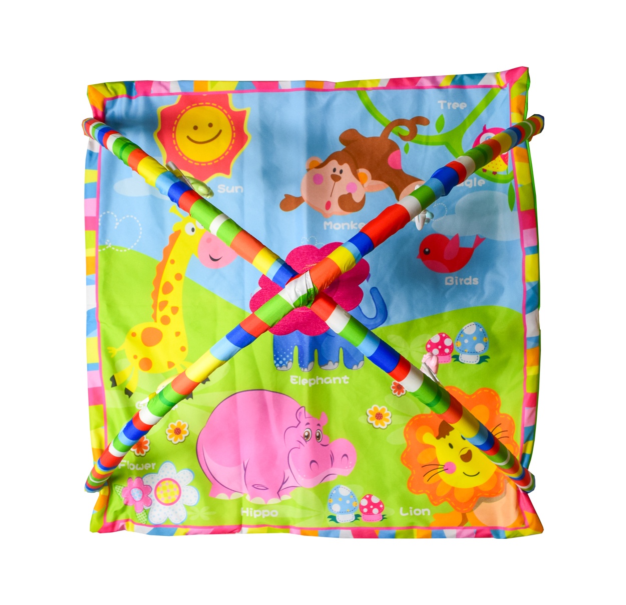 Igralna odeja pomaga razvijati otroško domišljijo z odkrivanjem barv in oblik, prav tako krepi čute dotika, vida in sluha, zahvaljujoč šumečim in gibljivim delom.