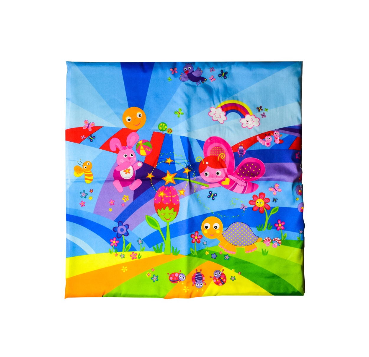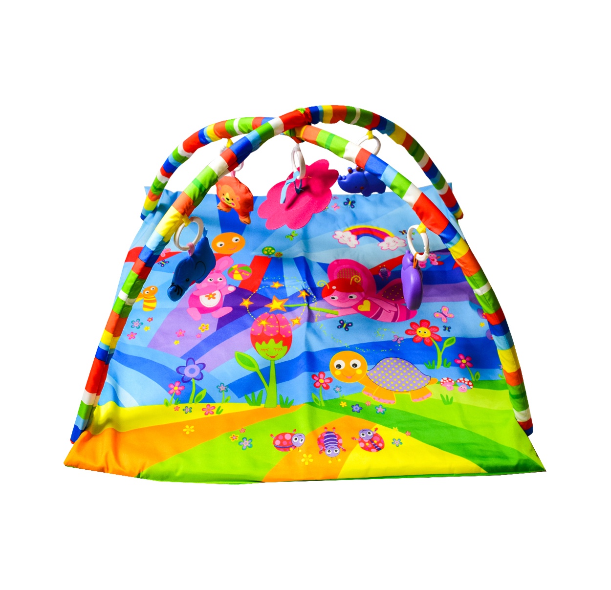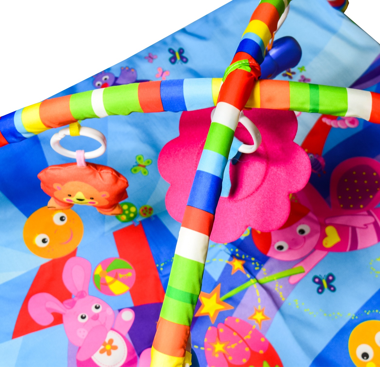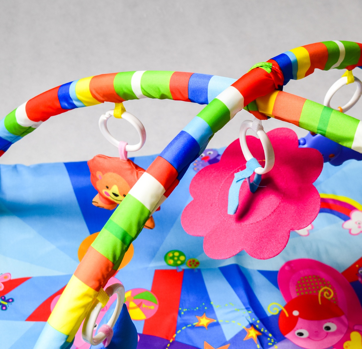 Igralna odeja pomaga razvijati otroško domišljijo z odkrivanjem barv in oblik, prav tako krepi čute dotika, vida in sluha, zahvaljujoč šumečim in gibljivim delom.