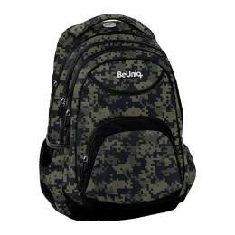 Ima tri prostorne predelke, sprednji žep na zadrgo z organizatorjem in dva stranska žepa iz mreže in tkanine za steklenico ali termovko.