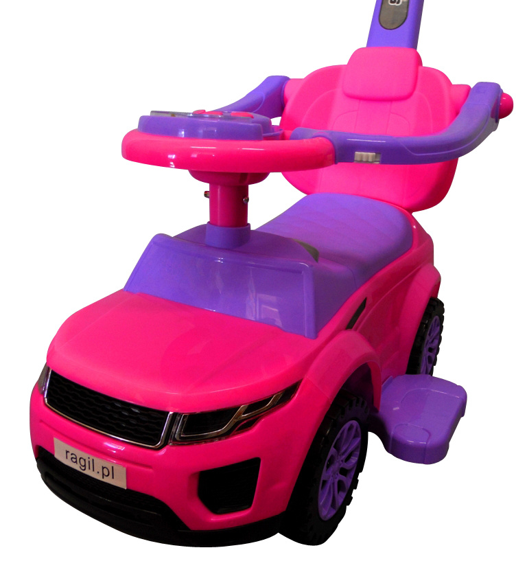 Otroški poganjalec otrok samostojno upravlja tako, da sedi za volanom in se poganja z nogami.