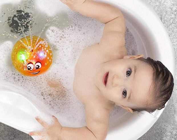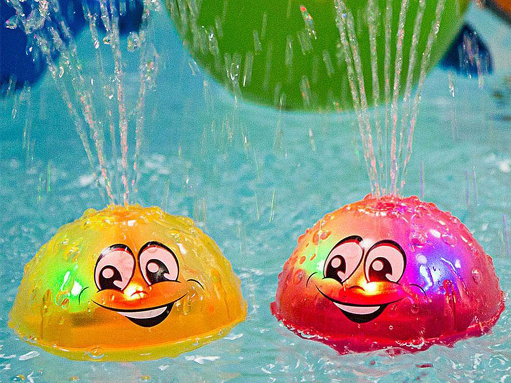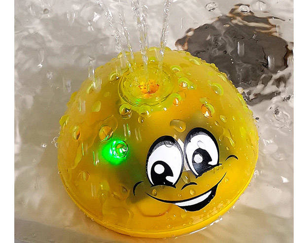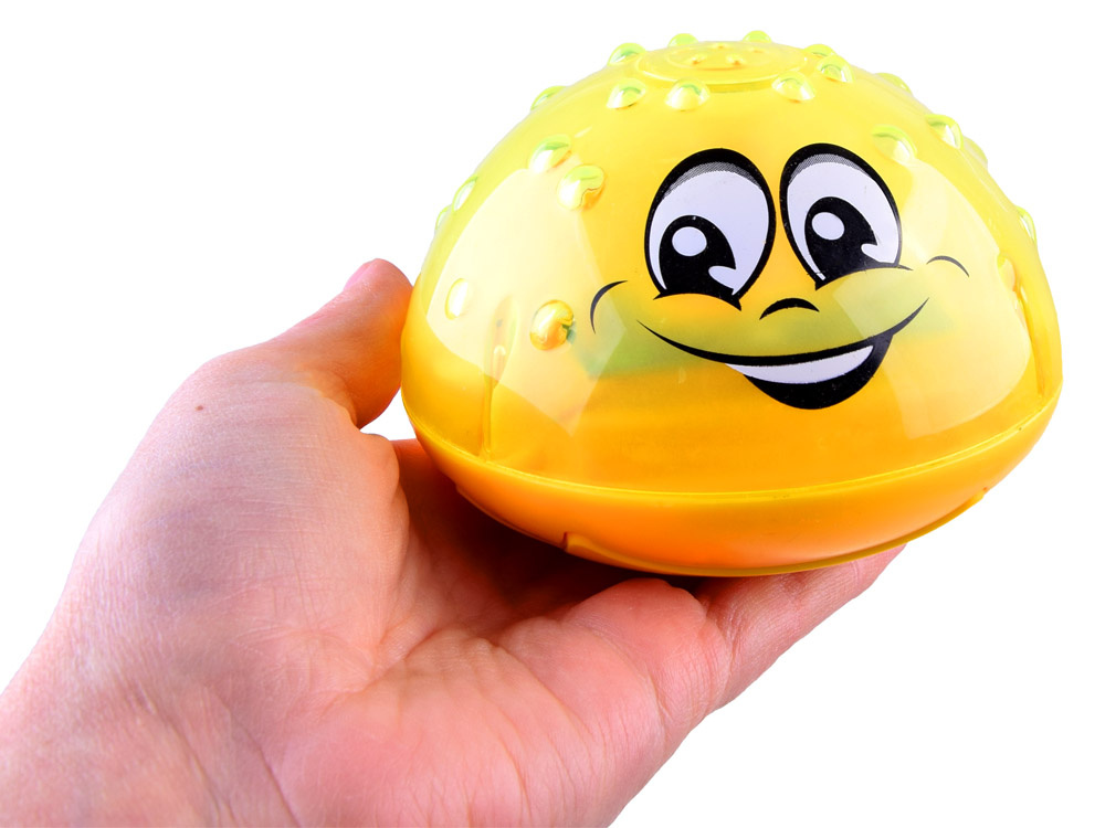 Pljuskanje vode spremljajo barvne spreminjajoče se luči. Naslednja atrakcija so izbokline na fontani, ki posnemajo kapljice vode. Neenakomerna struktura spodbuja otroka, da raziskuje površino igrače s svojimi majhnimi rokami. Po koncu igre ne pozabite temeljito posušiti senzorjev žogic.