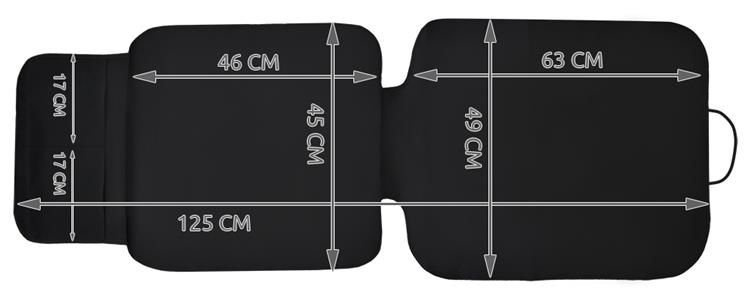 SPECIFIKACIJE - skupne dimenzije (dolžina / širina) 125 / 49cm, dimenzije sedeža (dolžina / širina) 46 / 45cm, dimenzije naslonjala (dolžina / širina) 63 / 49cm, teža 240g.