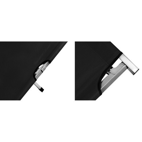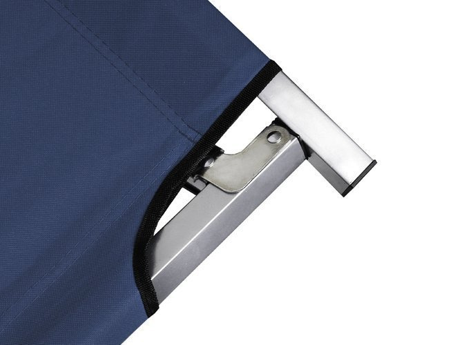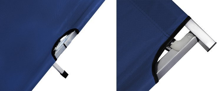 Po zložitvi zelo enostaven prevoz. Zaradi ojačanega okvirja in zapahnega sistema je postelja stabilnejša. Ležalna površina je izdelana iz trpežne poliestrske tkanine 600D.