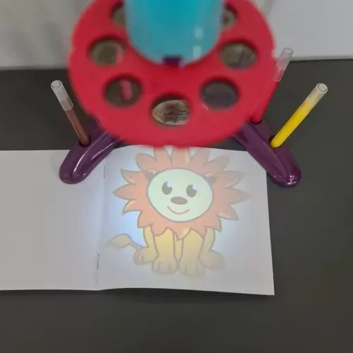 VKLJUČNO Z IZBIRAČI + PRENOSNIKOM - k setu s projektorjem in diapozitivi dodajamo 6 barvnih flomastrov in brošuro za risbe.Torej imate vse, kar potrebujete za začetek zabave. Udobno stojalo za pisala vam bo pomagalo ohraniti red in imeti potrebna orodja vedno pri roki.