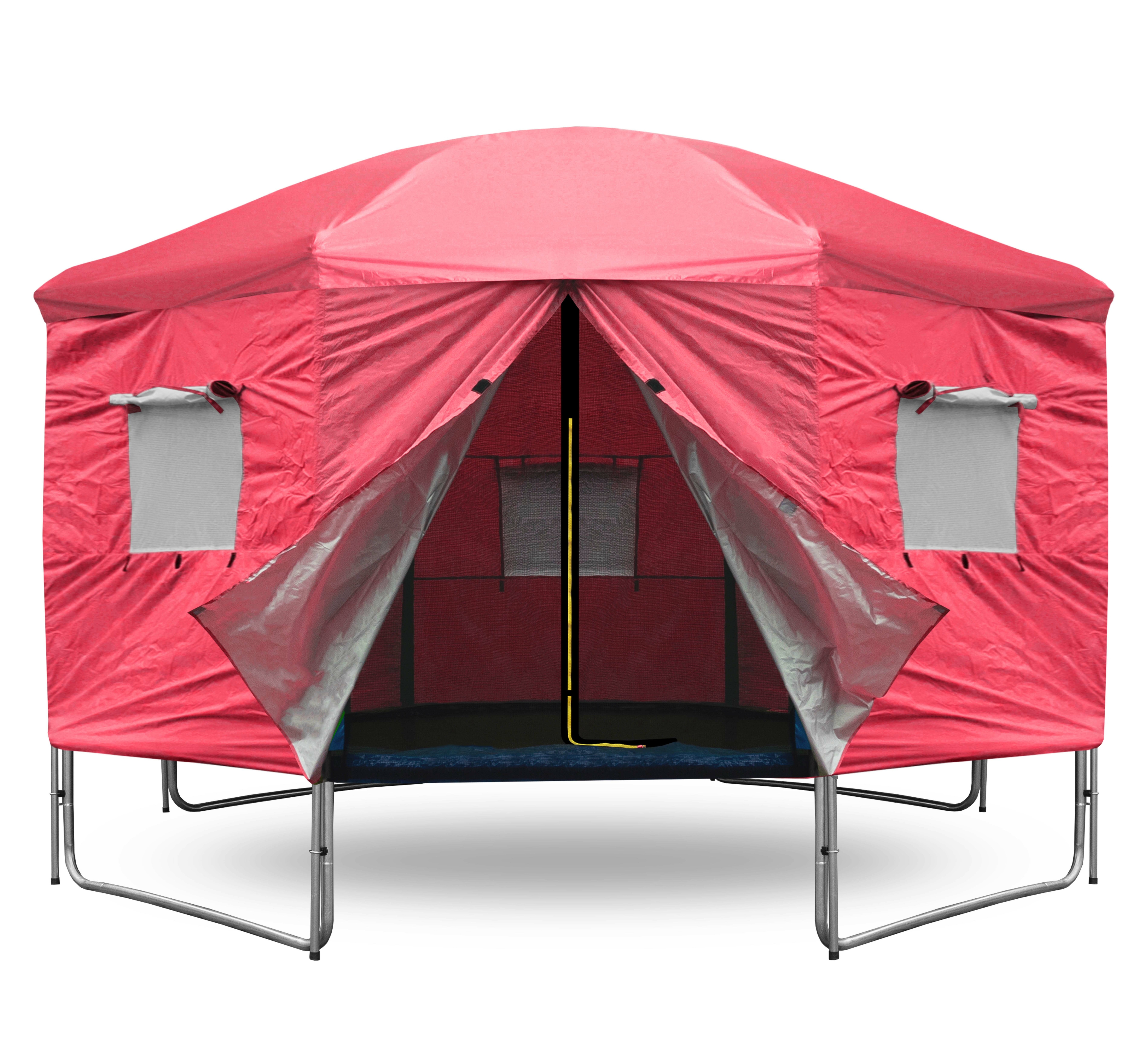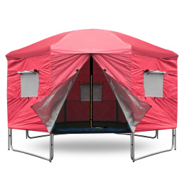 In v času, ko trampolina ni aktivno uporabljena, pomaga šotor zaščititi odbojno površino pred onesnaženjem in UV sevanjem.