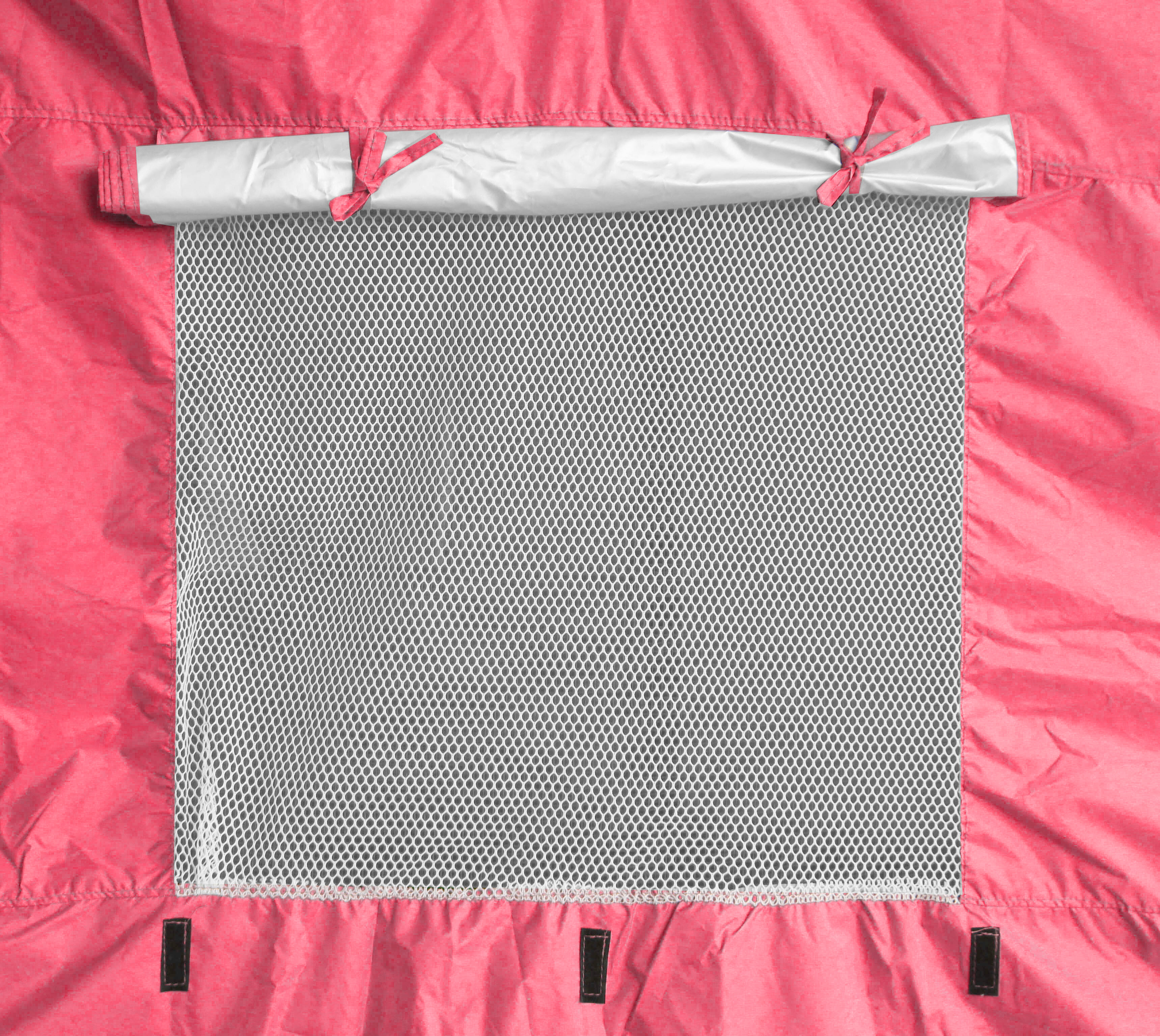 Šotor je opremljen zračniki, opremljenimi z roloji in mrežami proti insektom.