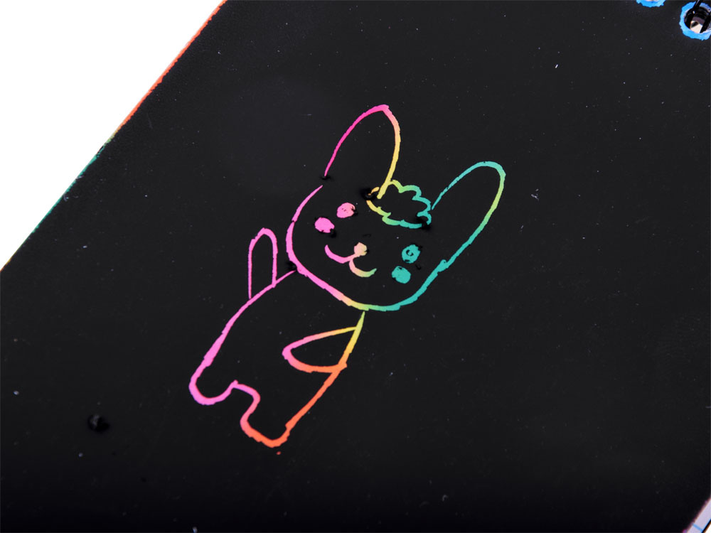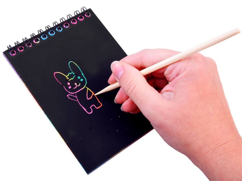 Barvni praskalni blok v barvah mavrice v praktičnem zvezku A6 z 10 stranmi bo vsakemu otroku zagotovil ustvarjalno zabavo. Beležnica s črnimi stranmi skriva čarobno ozadje, potrebujete le palico, pisalo, izpraskati vzorec, risbo in ustvariti očarljivo sliko. Otroška ustvarjalnost ne pozna meja, zato bo igranje s čarobnim zvezkom zagotovo zabavno!