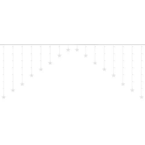 SPECIFIKACIJE - število načinov: 8; tip osvetlitve; LED; barva svetlobe: večbarvna; barva kabla: prozorna; število LED: 136; razred vodoodpornosti: IP44; daljinsko upravljanje: da; napajanje: električno omrežje; moč: 1,2W; velikost ene zvezde: 9 cm; skupna dolžina: 535 cm; dolžina ledene sveče: 100 cm; teža: 0,388 kg; teža v embalaži: 0,494 kg.