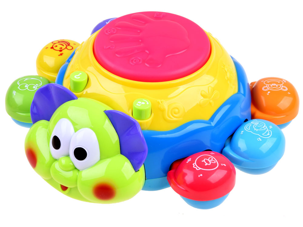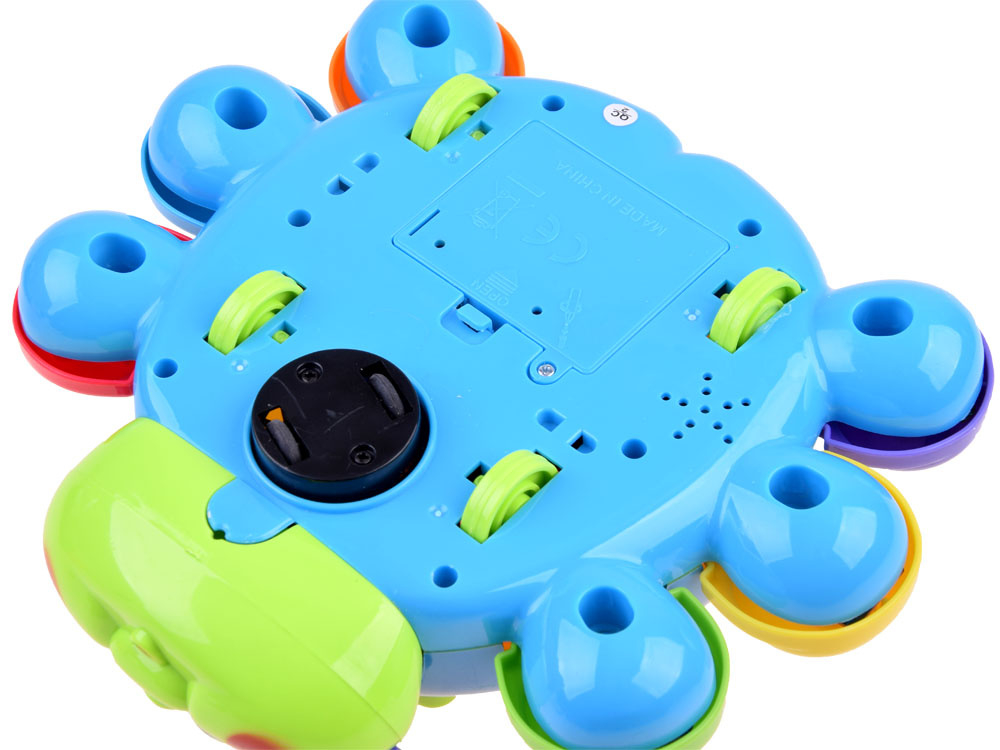 Zanimivosti igrače:- na zadnji strani je gumb z notami, ki predvaja vesele melodije in utripajočo luč. Velik rdeče osvetljen gumb na zadnji strani polža spreminja zvočne učinke