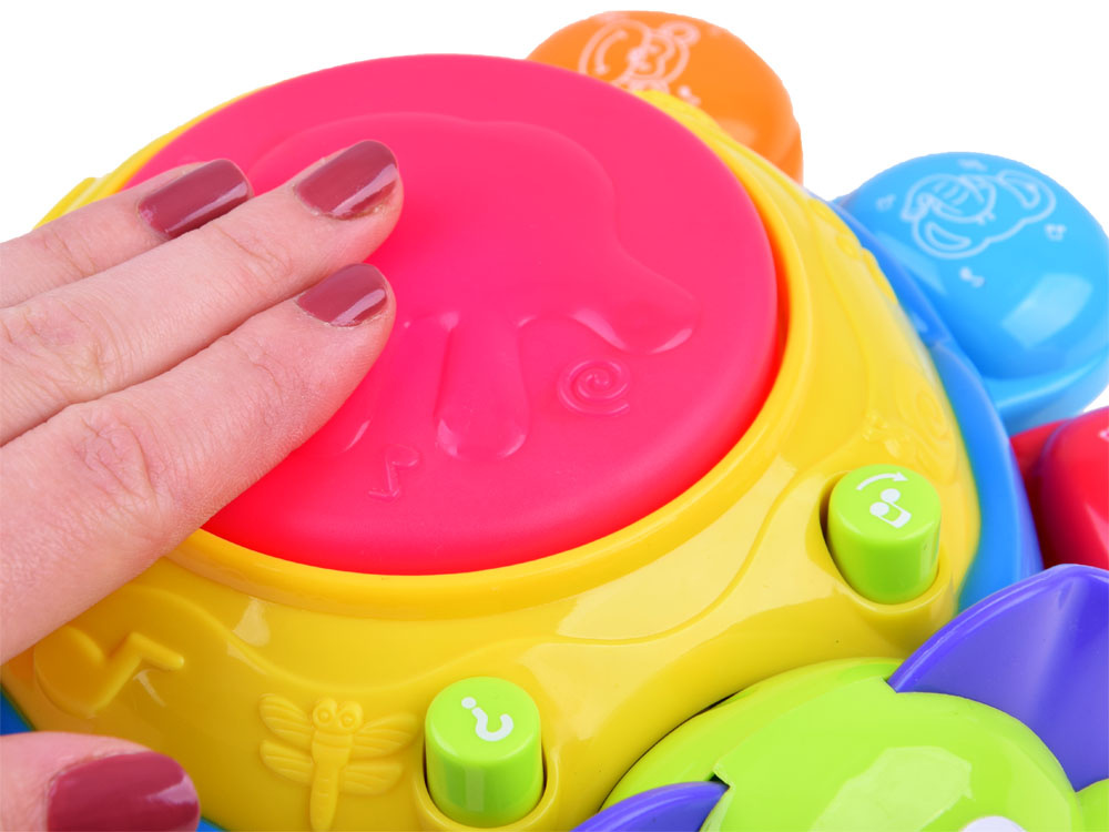Barviti hrošček ima izobraževalno in gibalno funkcijo. Izdelan je izključno iz plastike v privlačnih barvah. Ima zvočne in svetlobne učinke.
