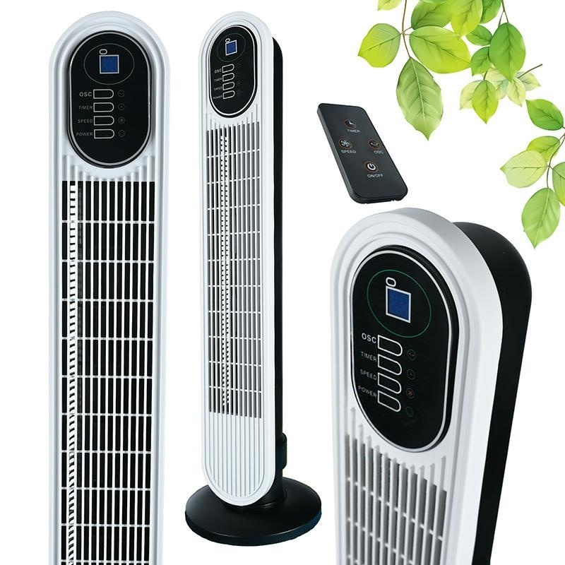 Stolpni ventilator z modernim dizajnom. Moč pihanja zagotavlja prijetno hlajenje. Trdna osnova preprečuje padec, nihanje pa omogoča enakomerno hlajenje celotnega prostora. V nasprotju s standardnimi ventilatorji, ki pihajo zrak le na višini lopatic, stolpni ventilatorji pihajo zrak po celotni svoji višini. Specifikacija: moč: 45W daljinski upravljalnik napajanje: 240V 60Hz časovnik: 0,5-9h dimenzije: 22x22x79cm dł. napajalnega kabla: približno. 100cm Dimenzije paketa: 15x15x82cm Količina kosov. na paleti: 91
