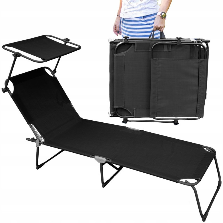 ZLOŽLJIV LEŽALNIK ZA VRT Investirajte v svoj lasten zunanji kotiček za sprostitev s tem elegantnim zložljivim ležalnikom za vrt. Ležalnik je izdelan iz trpežnega in lahkega aluminija, ki zagotavlja stabilnost in enostavno upravljanje. Idealno za vrt, teraso ali bazen. Streha ležalnika v vročih dneh nudi prijetno senco in vas ščiti pred soncem. SPECIFIKACIJE: ✅ Dimenzija strehe: 43 x 38 cm ✅ Višina od tal: 26 cm ✅ Širina ležalnika: 55 cm ✅ Barva: črna ✅ Največja nosilnost: 120 kg ✅ Teža: 4,7 kg